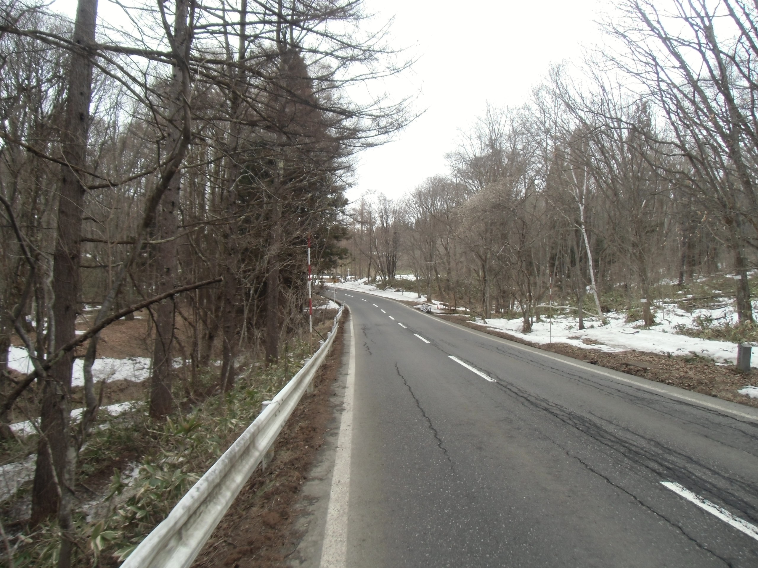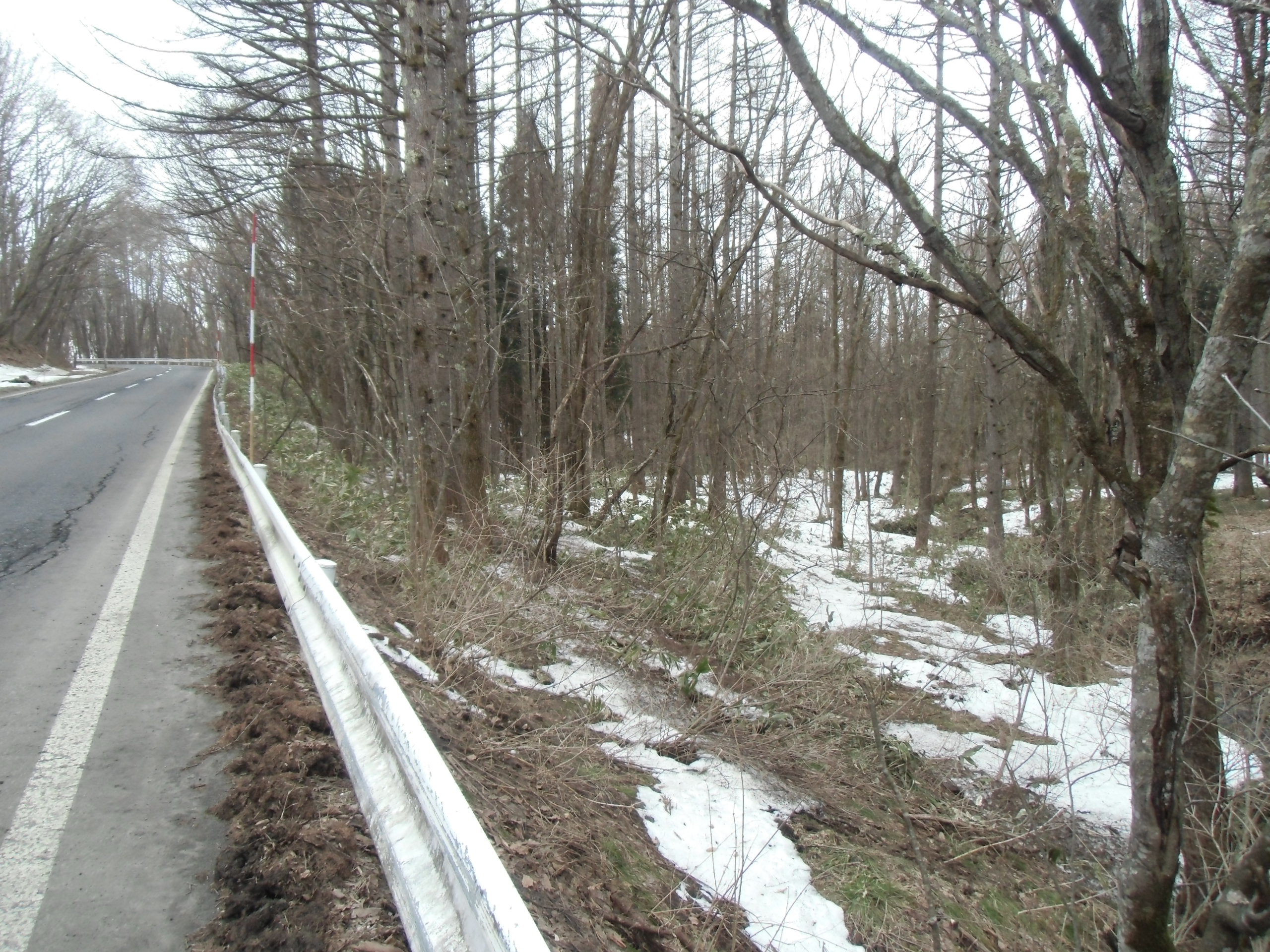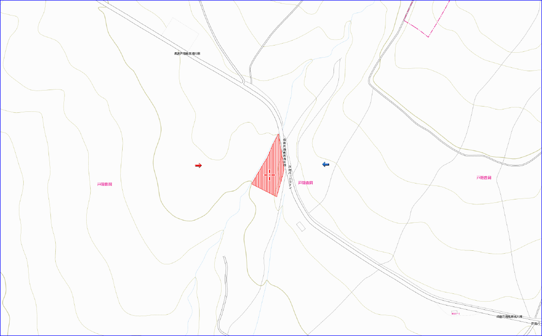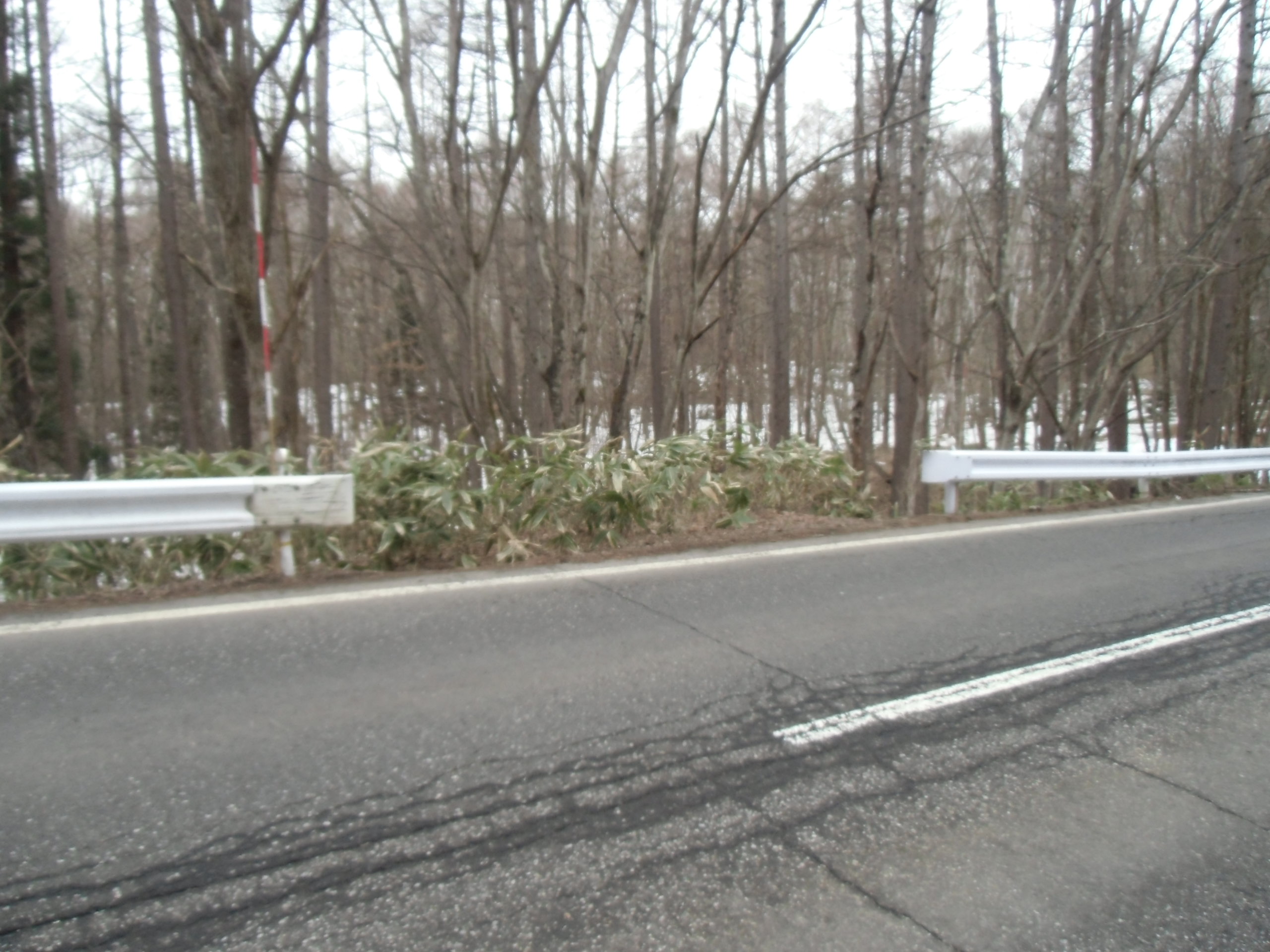 ガードレールの切れ目がありますが、この敷地の向こう側です。自営工事でガードレールをカットして駐車場を造りたいです。