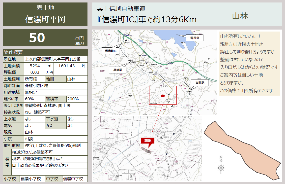 その他の信濃町の別荘地特集信濃町平岡 1601坪の山林‼ 価格:100万円