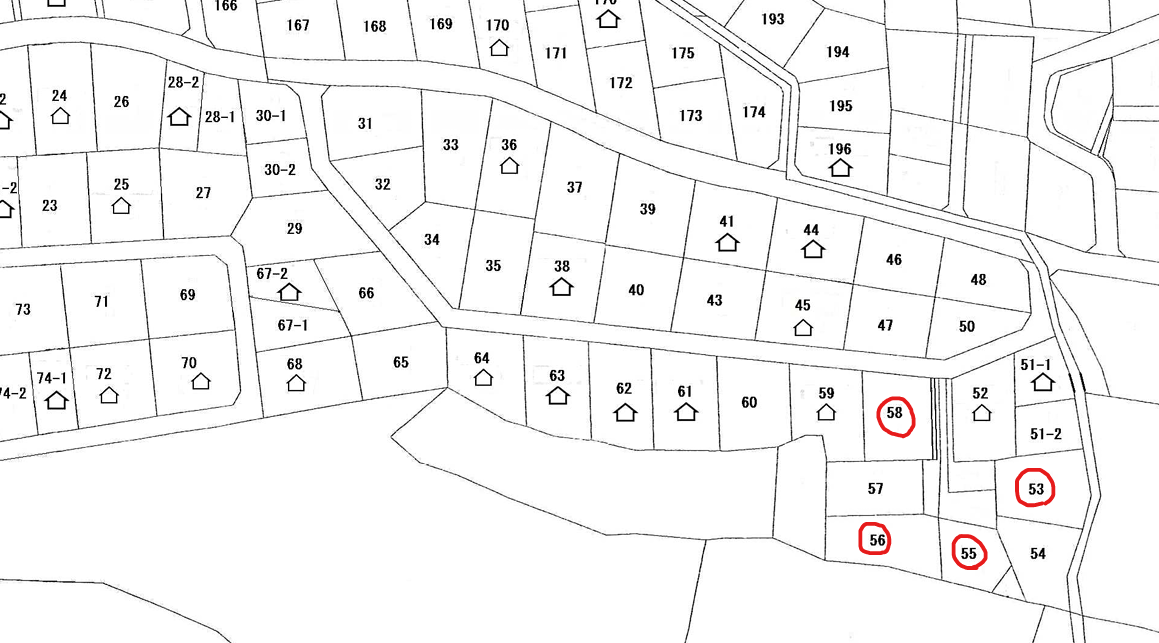 組合費(土地のみの場合):28,600円/年 、建築する場合、水道管設置負担金として約20万円(税抜)かかります(Φ13mm)。上水取り出し工事、浄化槽設置費は別途かかります。1197-287.-288は接道がありません(建築不可)、 |