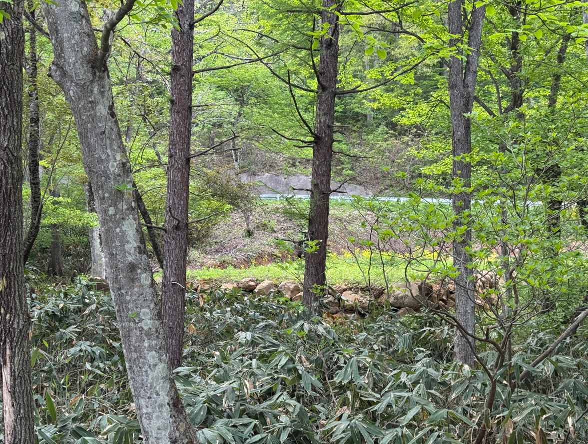 南麓別荘地の中でも、北側の道路沿で、1区画挟んで戸隠と信濃町を結ぶ県道が走ってます!何となく聞こえるたまに通る車の通る音が寂しくないかもしれません。 小林農園と該当地の間の林はキャンプ場計画有ります。騒音等は聞こえない遠さだと思います。小林農園さんよりじゃないかな!オートキャンプ場みたいな感じらしいです! そんな近くにマイ別荘、いいかもしれませんね! 裏側には小川があり、この音もいいですね、鉄分が多いので魚はいないし、水遊びは出来なさそうですが、雰囲気は最高!南面道路がうれしいです。